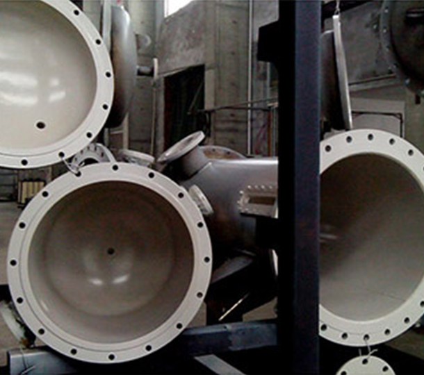 3、 襯里特點:(1)我廠有成熟的三維旋轉滾涂法、熱熔焊接法和四氟噴涂法三種工藝,可根據用戶的圖紙要求制作任何規格的內襯f4防腐設備,立式、臥式不限,可在任何位置開設支管,支管長度為100mm;